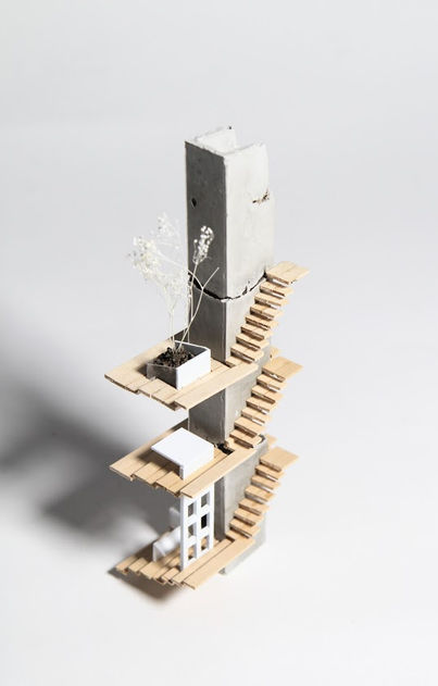 With these two systems informing the intervention, the introduction of program naturally mandated a conceptual microcosm of the existing building. A central axis with a hearth at its base, much like the original tower with the tomb below, sees a timber stair expand and contract around it, the aggregation of the same unit becoming floor, ceiling, and stair, providing the necessary space for living, and mirroring the Castel’s interior ramp. Much as the excavated marble shaft unites the layered history of the Castel, marble slabs unite the various programs between floors and provide spaces for consumption, cleanse, study, and rest. These programs descend from public to private, culminating in the scholar’s arrival at the excavated shaft. This one location, the studio, is the only space in the intervention directly lighted throughout the day, with openings inspired by those of the Met Breuer providing constant light as the sun travels east to west.